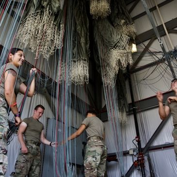 Shadow Canopy LLC is a full-service rigging facility specializing in inspection, maintenance, packing, and certification of parachute and aerial delivery systems, supported by dedicated rigging bays, controlled repair stations, and certified experts.